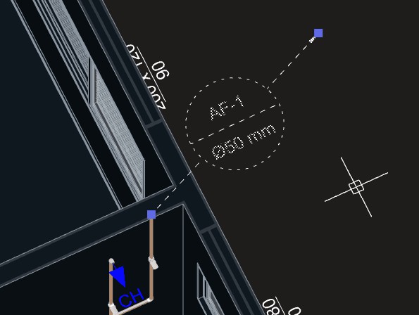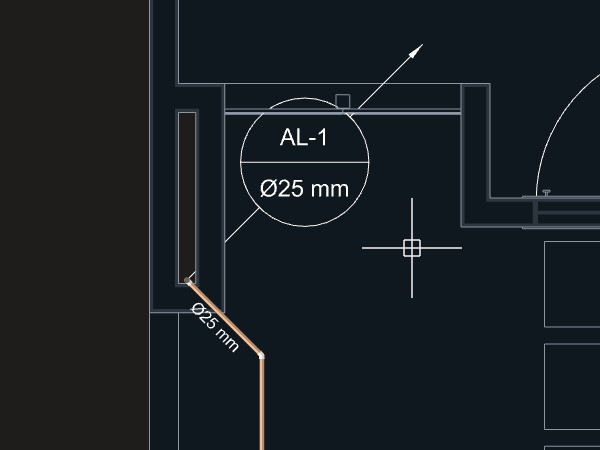 - Para criar a tubulação de elétrica de uma luminárias de teto até o quadro: