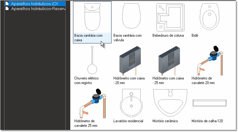 Observe que os pontos hidráulicos inseridos já aparecem na alturas corretas de instalação - Selecione o Lavatório.