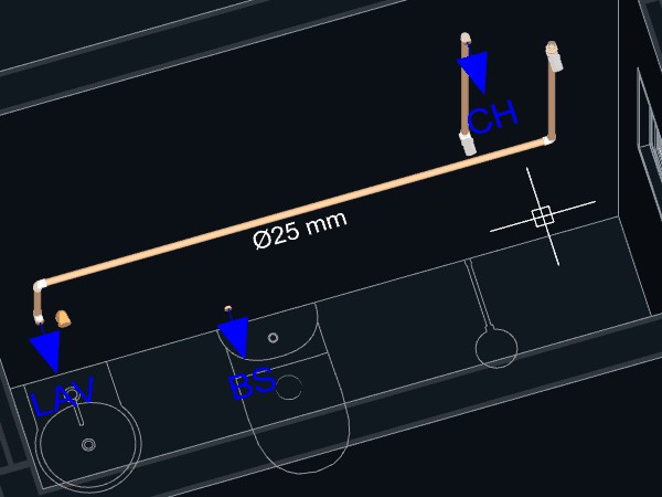 Depois de lançar todos os aparelhos hidráulicos necessários ao projeto, podemos iniciar o lançamento dos tubos e conexões de água.