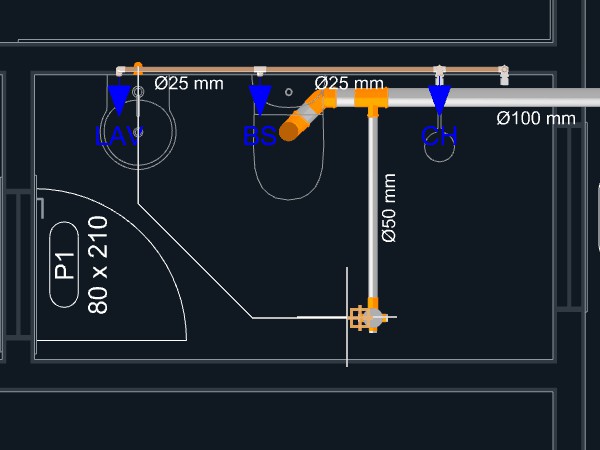 O lançamento das tubulações poderá ser feito em qualquer um dos modos de visualização Em planta