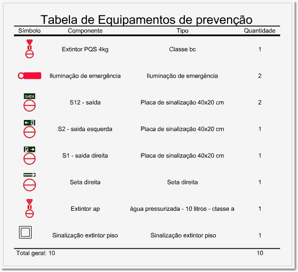 - Para criar as tabelas de quantidades e legenda de Prevenção contra incêndios: