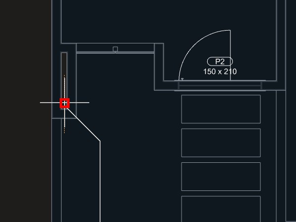 4. Aproxime o cursor do mouse da parede (ou linha de referência se for um desenho 2D importado) onde pretende inserir o componente;