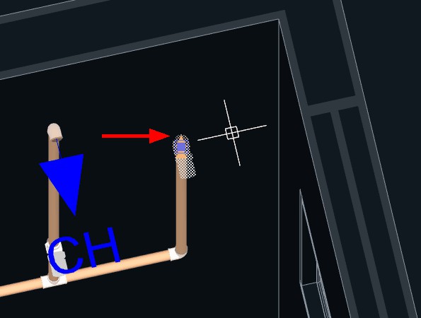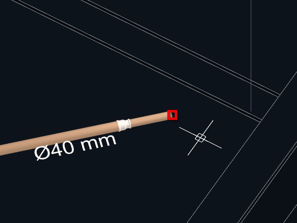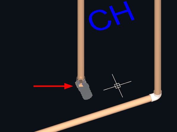 4. Aproxime o cursor do mouse do ponto final da tubulação que pretende reduzir o diâmetro;