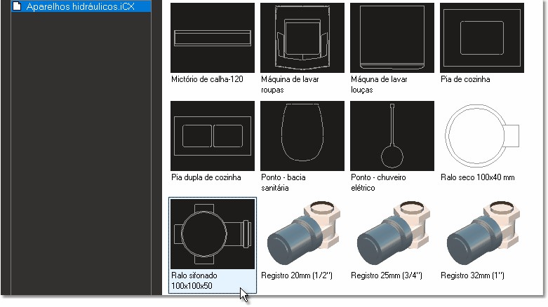 hidráulicos", selecione o componente "Ralo sifonado 100x100x50"