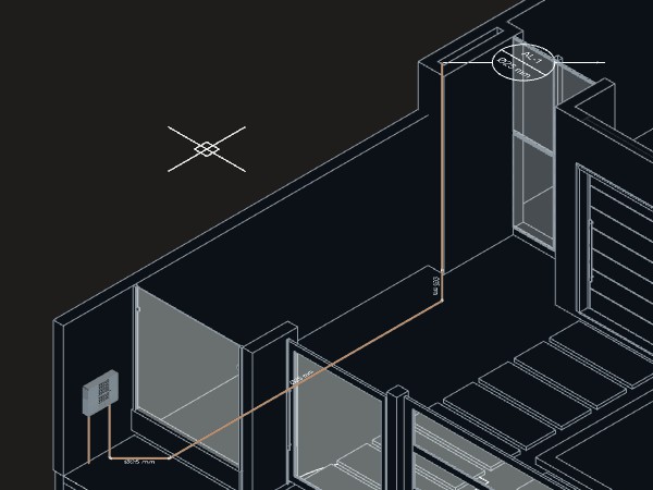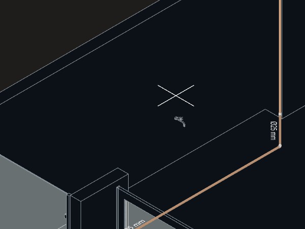 - Para criar a tubulação de elétrica de uma luminárias de teto até o quadro: