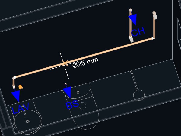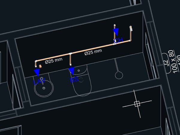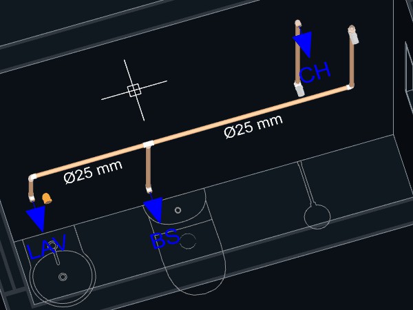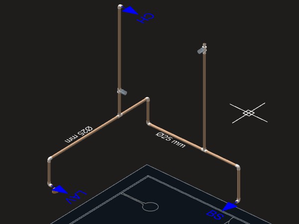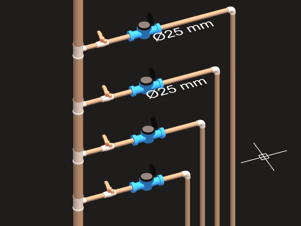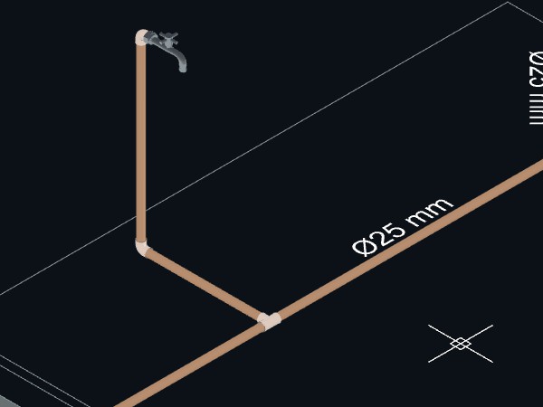 - Para criar um detalhe isométrico de distribuição de água: