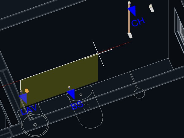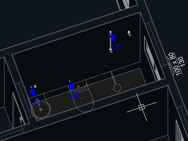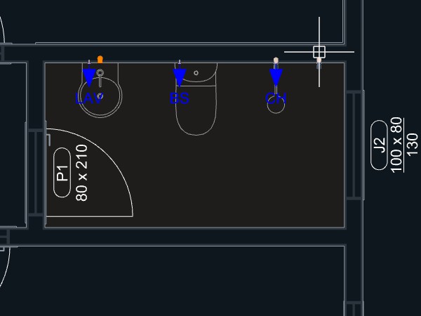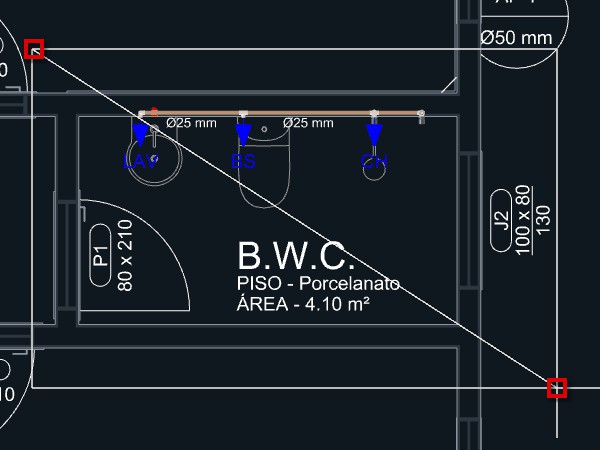 Observação: Alguns pontos hidráulicos são programados para adicionar automaticamente pontos a tubulação levando a uma distância definida para o centro da parede, como é o caso do Lavatório.