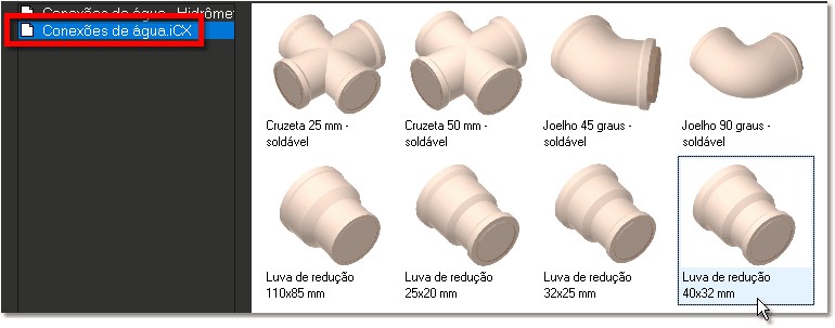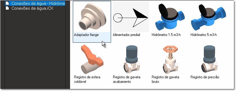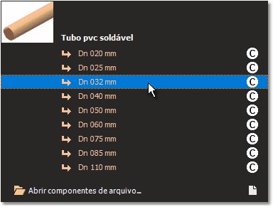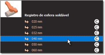 hidráulicos", selecione o componente "Registro de gaveta 25 mm