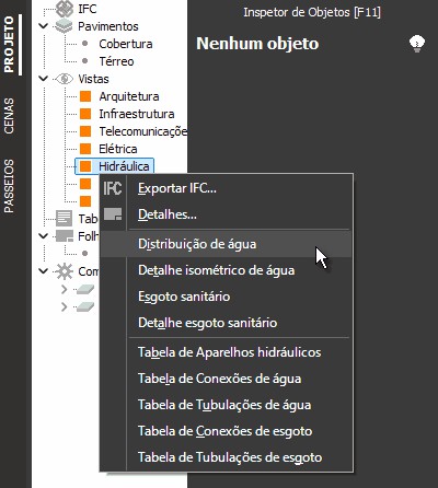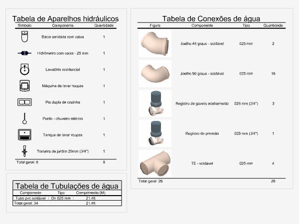- Para criar as tabelas de quantidades e legendas de Hidráulica: