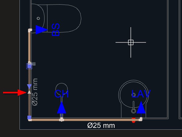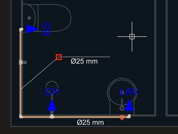 Depois de lançar todos os aparelhos hidráulicos necessários ao projeto, podemos iniciar o lançamento dos tubos e conexões de água.