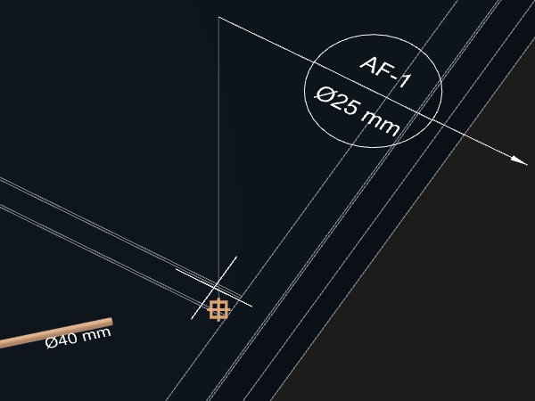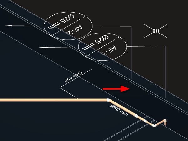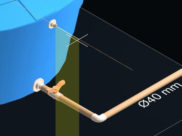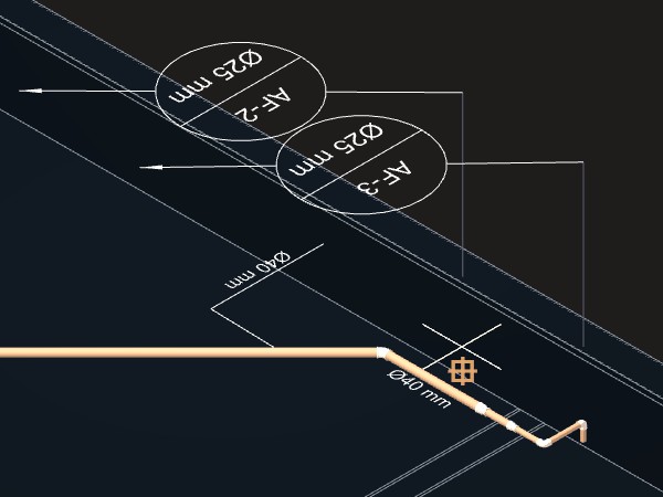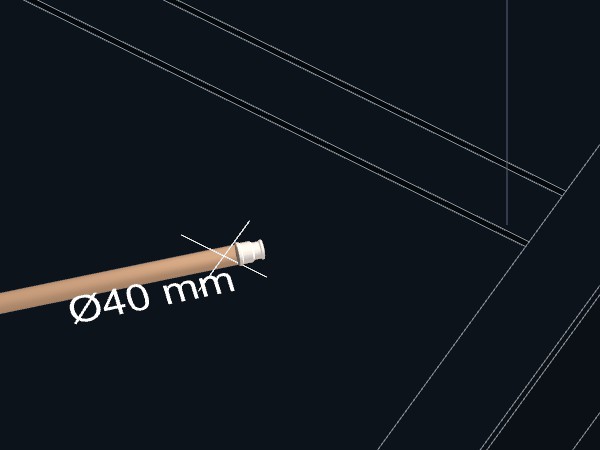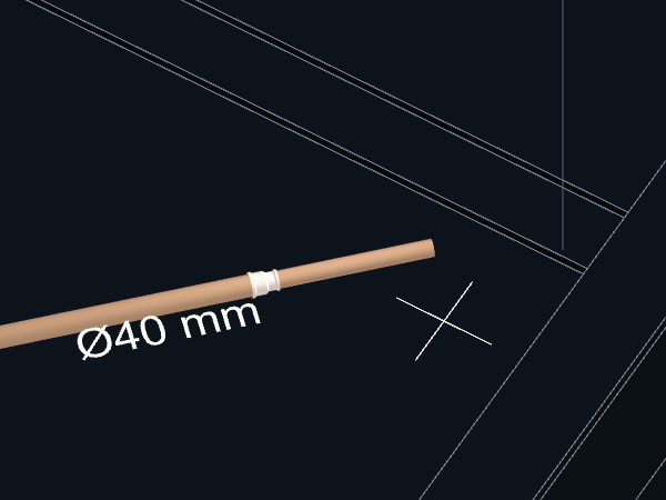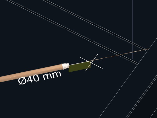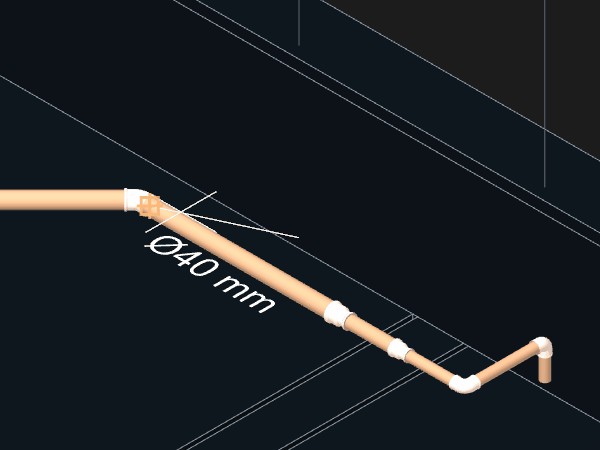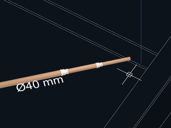 As tubulações deverão ser ligadas. Uma peça de conexão Tê de redução 40x25 mm deverá ser criada no ponto de interseção entre as duas tubulações.